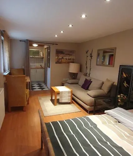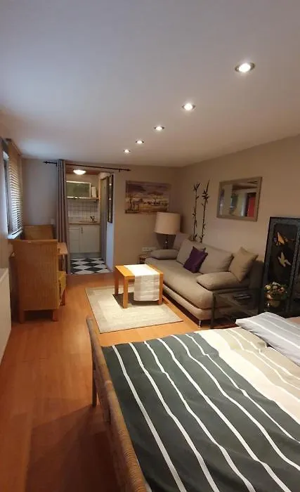 Dieses Apartment verfügt über eine komplette Küche mit einer Mikrowelle, einer Kaffee-/Teemaschine und Küchenutensilien. Für einen bequemen und entspannenden Aufenthalt in dieser Unterkunft stehen den Gästen Ausstattung zur Kaffee- & Teezubereitung zur Verfügung. Weniger als 13 Minuten zu Fuß von hier entfernt liegt das Restaurant Kastanie, wo mitteleuropäische Speisen serviert werden. Die Bushaltestelle Am Hain liegt in 5 Gehminuten Entfernung von diesem 35 m^2 großen Apartment.